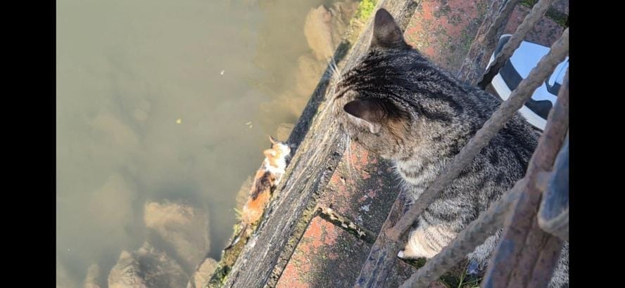İhbar üzerine olay yerine gelen itfaiye ekipleri, yavru kediyi kurtarmak için çalışma başlattı. Ekipler korkuluklardan aşağıya merdiven uzatırken, anne kedi operasyonun yapıldığı noktanın en ön sırasında bekleyerek gözünü bir an olsun yavrusundan ayırmadı. Bir itfaiye eri merdivenle aşağı inerek, beton blok üzerinde titreyen ıslak yavruyu yakalayıp güvenli bölgeye çıkardı.